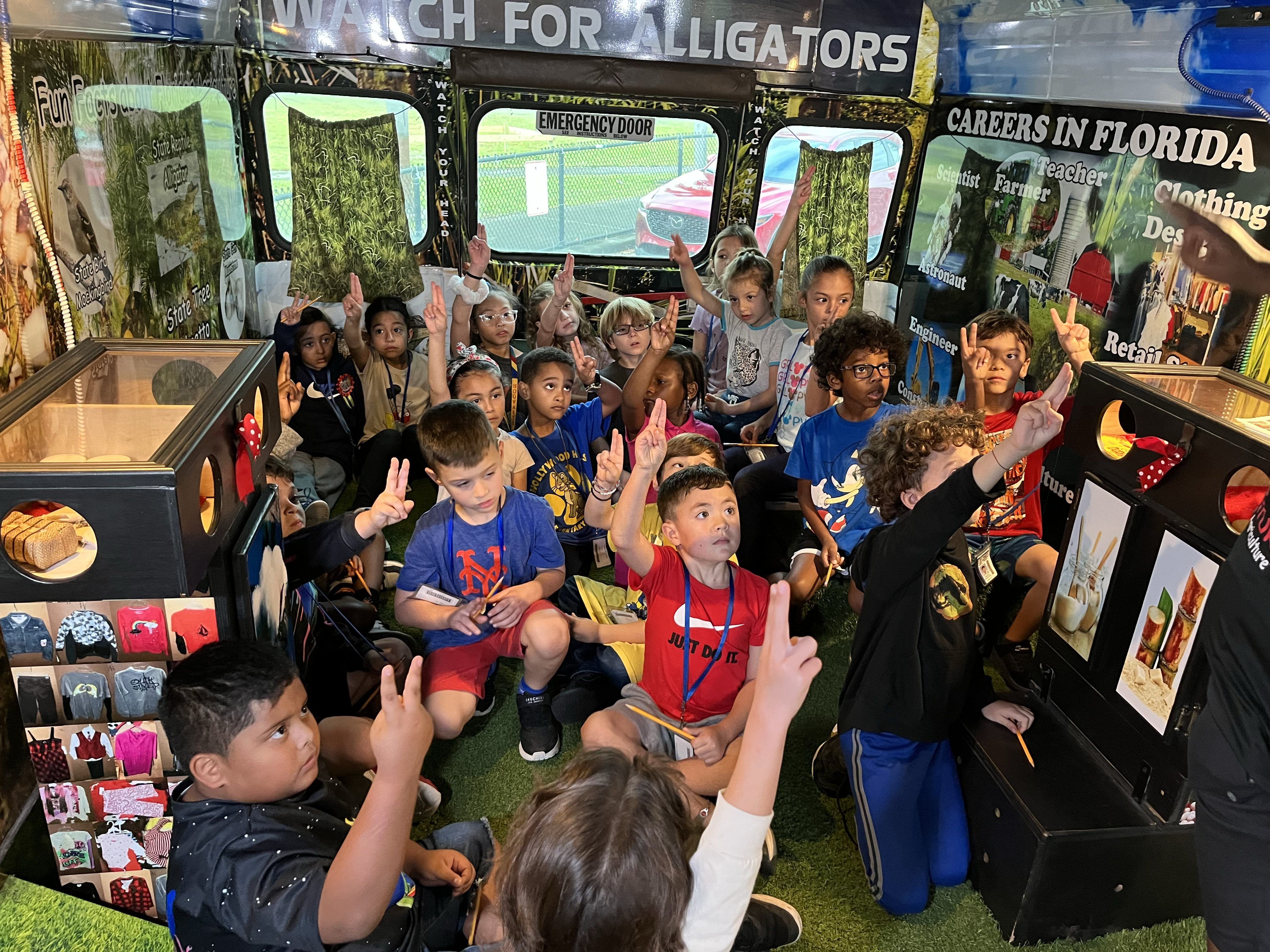 Have you ever been on the great, glowing GABIE bus? First grade students had a great experience on this field trip that came to HHE. GABIE stands for Great American Bus Interactive Education. The students participated at four different stations with different STEM and hands-on activities including a scavenger hunt.